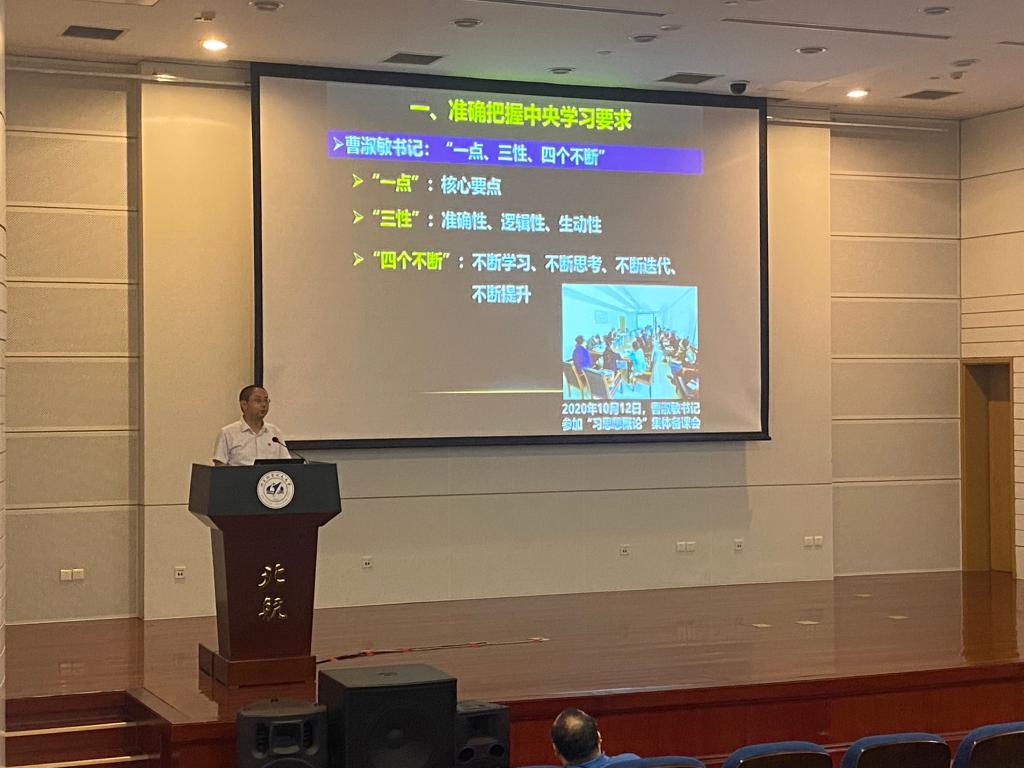 为深入学习宣传习近平总书记在庆祝中国共产党成立100周年大会上的重要讲话精神,贯彻落实上级部门关于党史学习教育的工作部署,7月9日下午,伟德国际1946bv官网召开全院教师大会,学院院长赵义良、分党委书记高宁分别以“思政课建设历程的回顾与思考”“深入学习‘七一’重要讲话精神”为题,为全院教职工讲授党史学习教育专题党课。